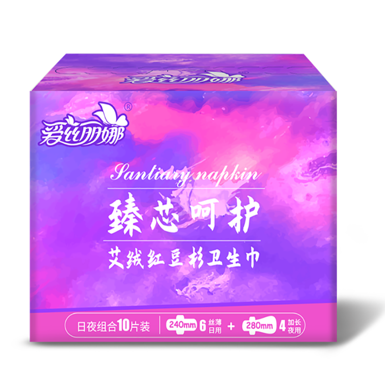 Red Bean Cedar Sanitary Napkin Pad Day & Night Combo Pack 240 mm/6 pcs+280 mm/4 pcs, 10 pcs/pack, 5 packs 50 pcs